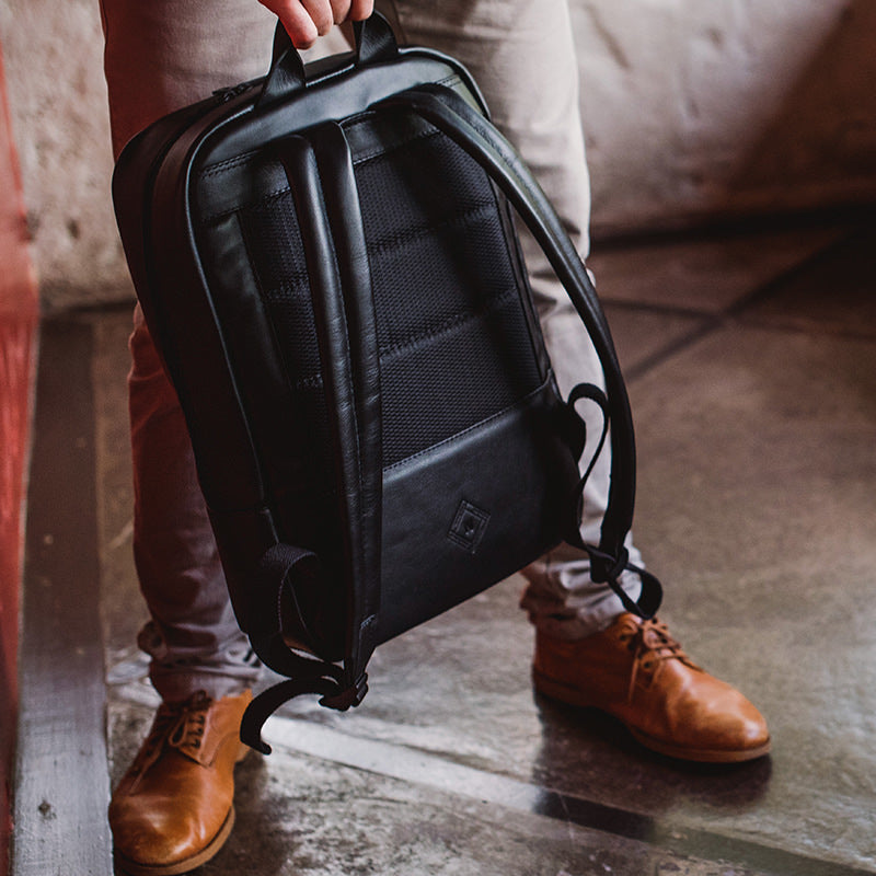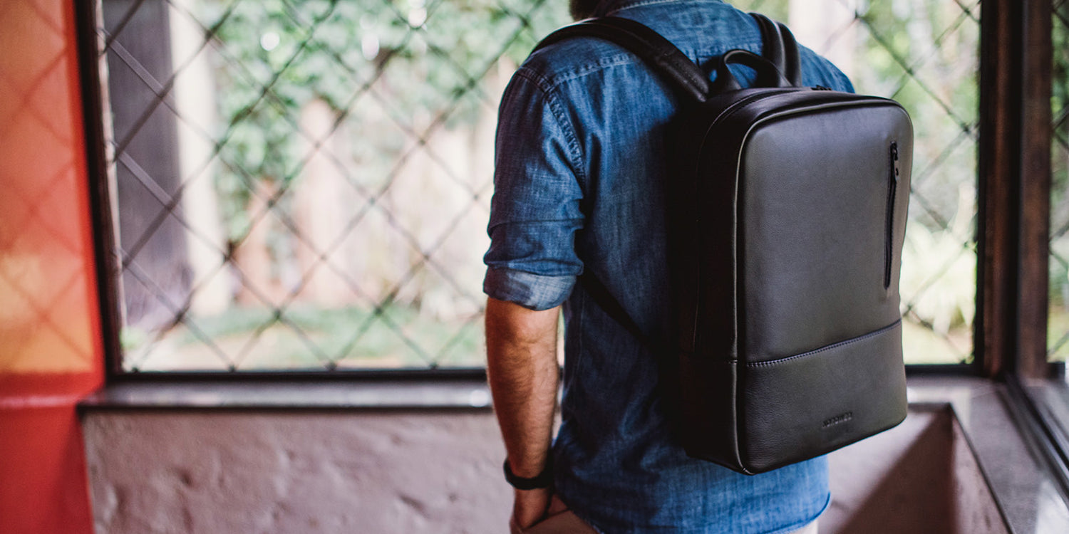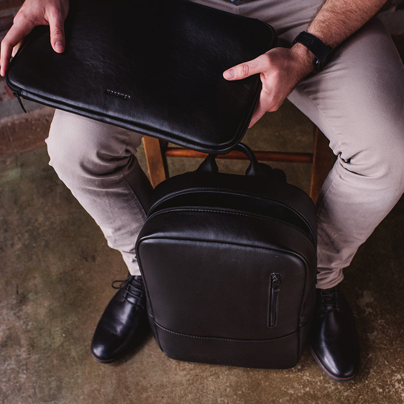 Included with the Nomad backpack is a leather case for laptops up to 15.6 inches.
