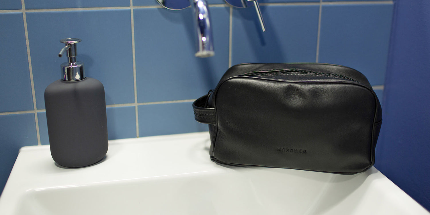Classic toiletry bag, made from premium leather and with waterproof nylon